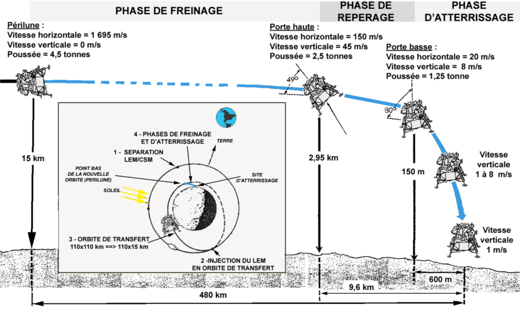 6 Insertion en orbite lunaire – 7 Abaissement orbite lunaire